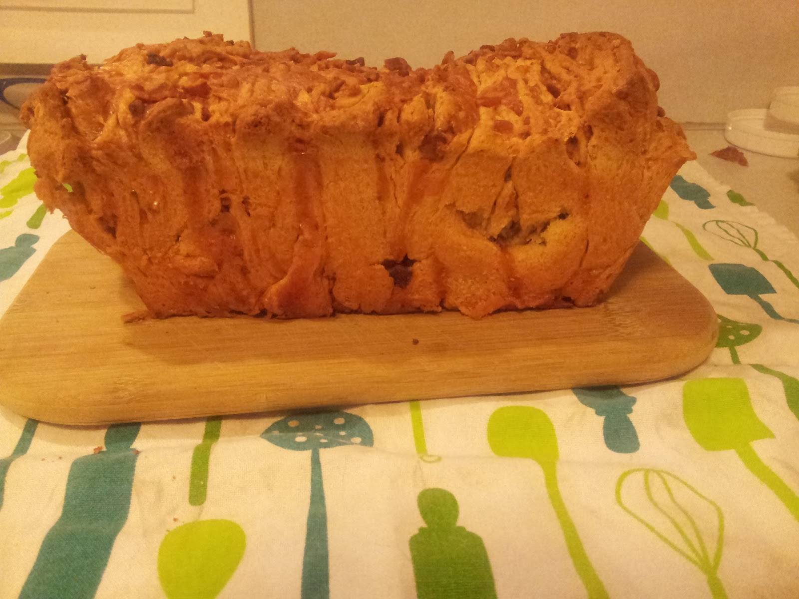 I am obsessed with savory bread. I don't make a ton of bread, but whenever I do I want to add cheese, and sometimes Jalapenos. Then the thought occurred to me that I should make this a breakfast bread and add bacon! WOW oh WOW was this bread worth the wait. It is a yeasted bread so it takes time to rise, 2 rises to be exact. Making bread in the warmer months is less frustrating. Since the house is already warm/hot it's easy to get the bread rising quickly. But it is a double edged sword, cause then to bake the bread you have to turn on the oven.  If this is started early in the day it will be ready for dinner, or start it late and bake at night when it's a little cooler. Then the bread will be ready for breakfast! So here you go. Really it's not that hard Just jump in and make it!